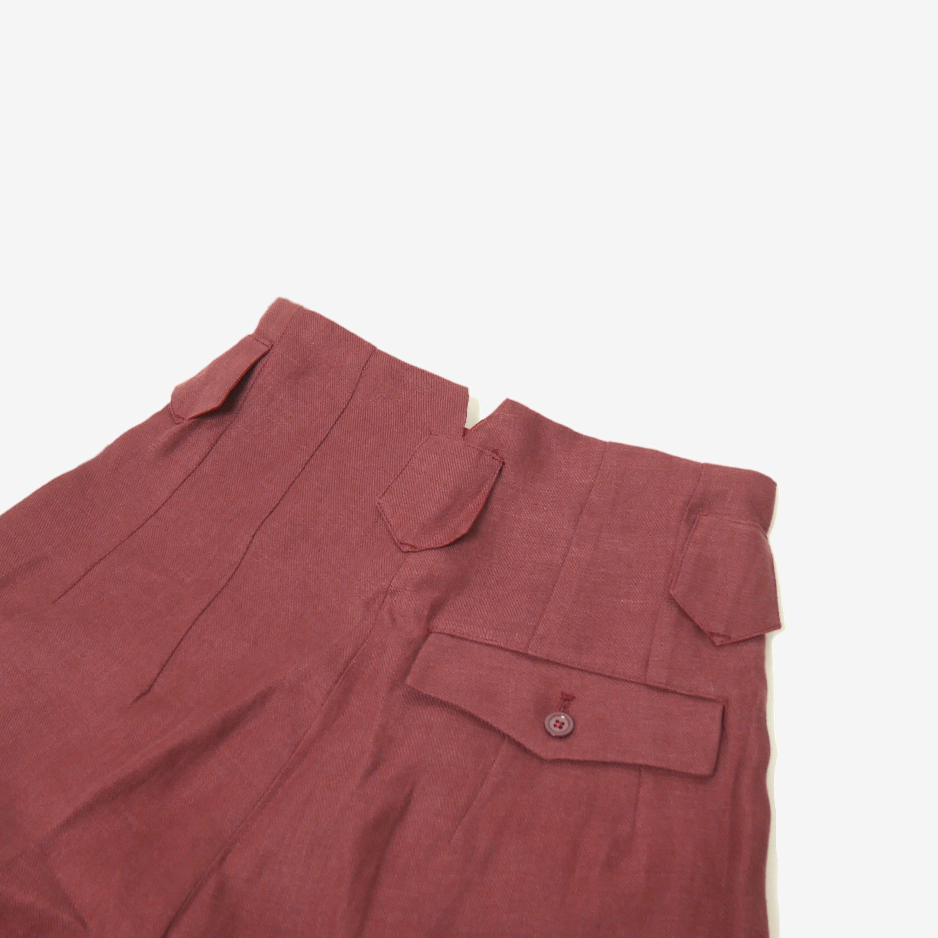 しわになりやすい麻素材なので、センタークリースにミシンをたたき、立体的なシルエットが消えないように一工夫してあります。